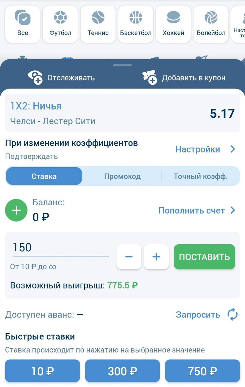 • быстрый вход и ставки: на главном экране доступны все события в Линии и Лайве;